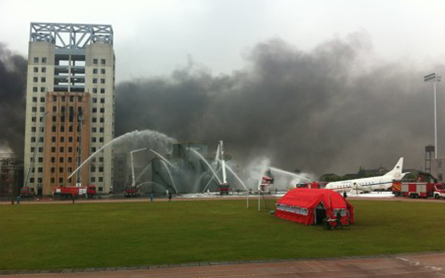浙江省消防演習(xí) 我公司負(fù)責(zé)現(xiàn)場(chǎng)十機(jī)位高清錄播。用自動(dòng)感應(yīng)車拍攝演習(xí)。